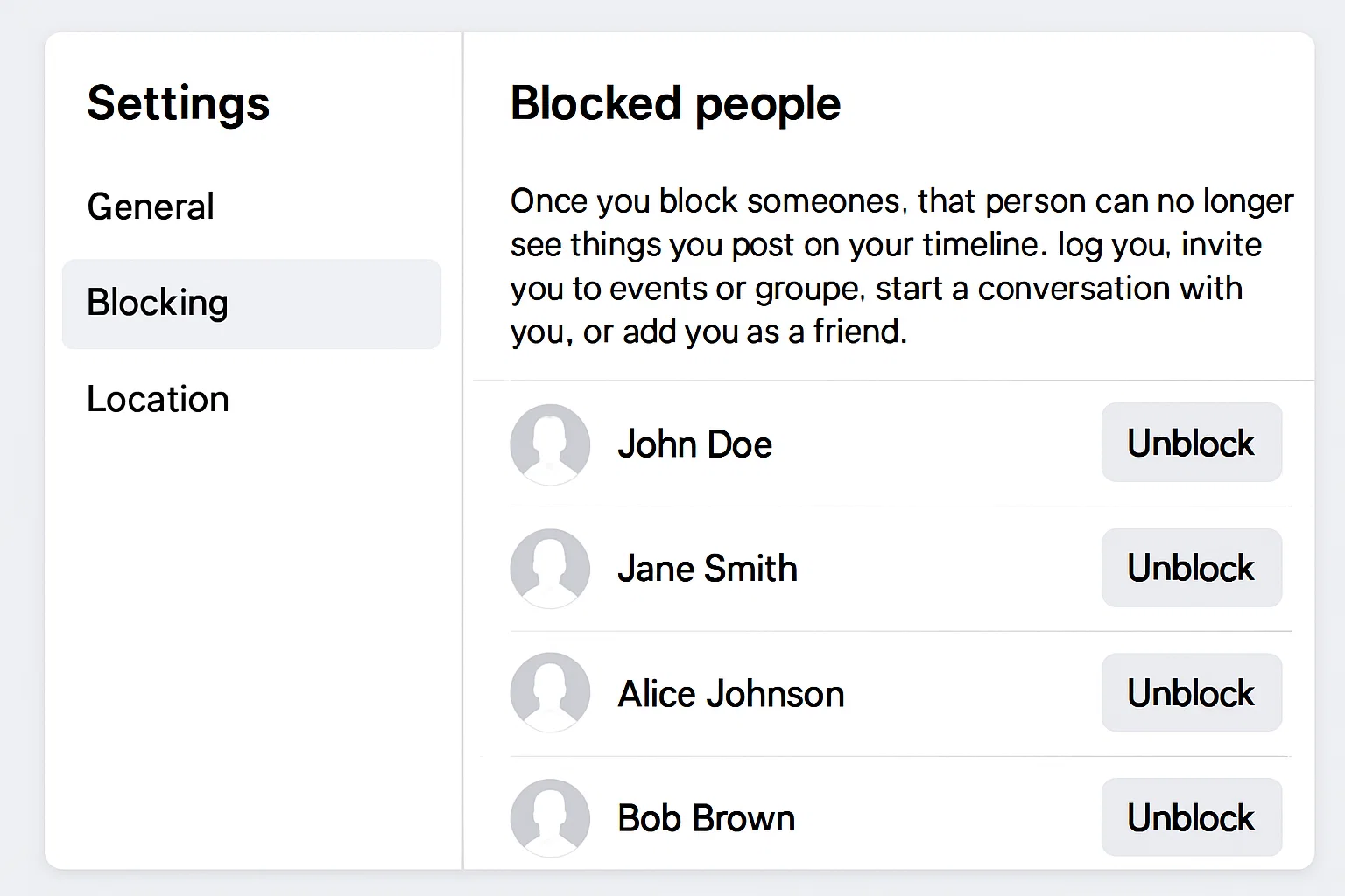 - Seznam je pred vami: Kliknite nanjo in Facebook vam razkrije seznam vseh oseb, ki ste jim preprečili dostop. Običajno je naslov sekcije “Blokiranje uporabnikov” ali “Upravljanje blokiranja”.